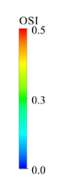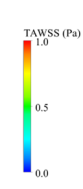 计算流体力学(Computational fluid dynamics, CFD)已经被用来模拟心房和心耳内的血液流动的物理机制和生物学行为,进而分析血流特性并预测血栓形成的风险。在研究左心房、心耳内部血液流动时,将下一个心跳周期的新鲜血液和上一个心跳周期残留的血液看成两相,利用 VOF(Volume-Of-Fluid)模型对新旧相血液进行标记和跟踪,通过研究若干个周期后“旧相血液”的残留百分比来表征心房/心耳内部形成血栓的风险。此外,基于壁面剪切应力构建的时间平均壁面剪切应力(time-averaged wall shear stress, TAWSS)、震荡剪切指数(oscillatory shear index, OSI)、相对停留时间(relative residence time, RTT)以及内皮细胞激活潜能(endothelial cell activation potential, ECAP)一定程度上也可以反应左心房/心耳容易形成血栓的位置和风险。