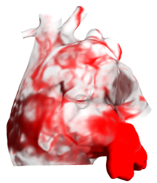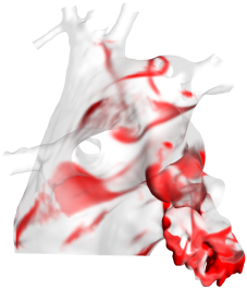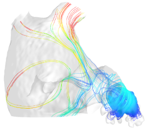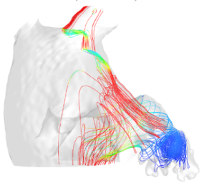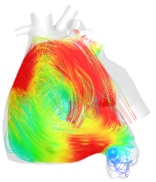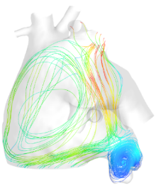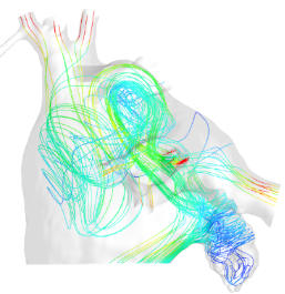 房颤患者(有血栓)的血液流线。