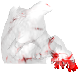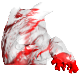 房颤患者(有血栓)的残留血液分布。