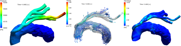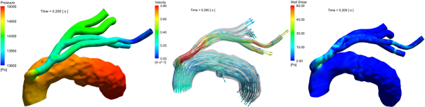 不管是何种技术方案,最终对病人的影响都反映改善血流流动状况,包括血压,供血等。目前的临床测量工具并不能提供精细的流场分析,测量结果也无法用于计算血流动力学参数的分布,如内皮剪切应力等。因此,为了计算血流动力学参数的分布,从而为术后的短期和长期治疗提供更多的判断依据,需要借助计算流体力学(computational fluid dynamic, CFD)技术来还原血管内部流场。